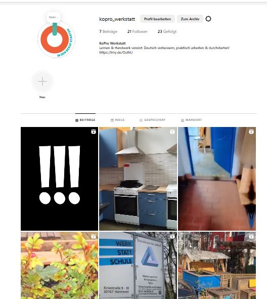 Arbeitsfeld Politische Bildung der Werk-statt-Schule hat gemeinsam mit Teilnehmenden aus dem Projekt KoPro das Projekt INSTA – In den Beruf Starten begonnen. Seit März erstellen junge Menschen kurze Videos, Bilder und Texte aus dem Berufsorientierungsprojekt.